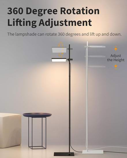 这款落地灯外观设计时尚优雅,能够无缝融入各种家居风格,配备360°旋转和可调节高度的LED灯头,用户可以轻松调整光线方向,内置17瓦LED芯片,提供高达 1300 流明的明亮照明,3000K 暖光色温散发柔和自然的光芒,便捷的脚踏开关设计,让您无需弯腰,只需轻轻一按即可轻松控制灯光。灯体采用铁质材料,搭配耐刮擦、耐腐蚀的亚克力透明灯罩,坚固耐用,高度1.7米。
