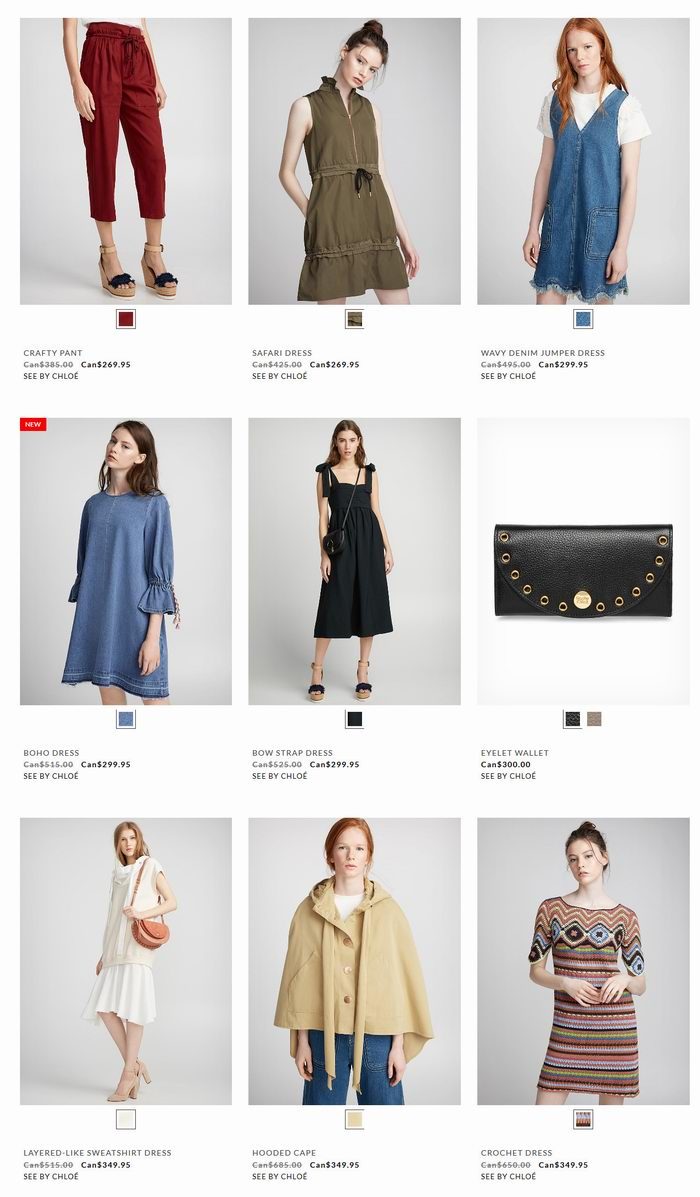 Simons网店销售,美美的See By Chloe连衣裙、上衣 5折优惠!满100加元包邮。点击进入订购页面。