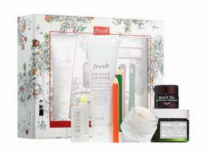 FRESH Holiday Glow 节日护肤品套装:大豆洁面 50ml、馥蕾诗天然黄糖去角质极致修护面膜30 g 、Fresh保湿亮光剂15ml、2支彩色铅笔。