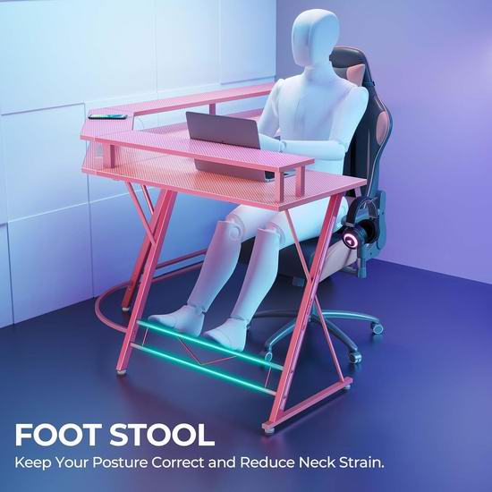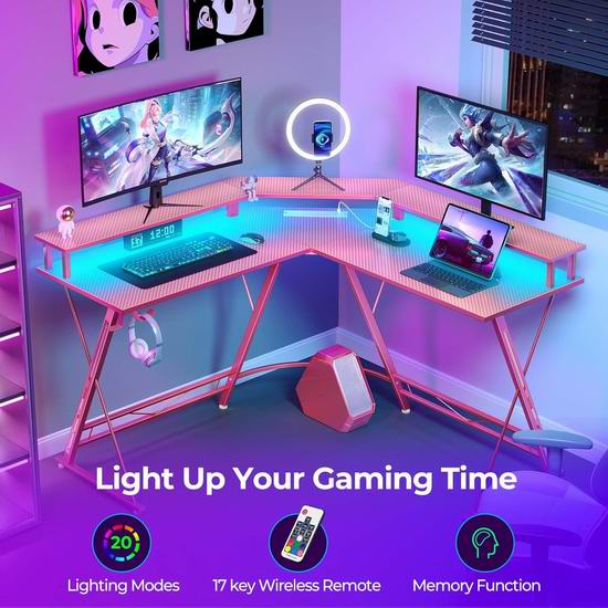 历史新低!SEVEN WARRIOR 50.4英寸 超萌粉色 带插线板+智能LED灯 L型电脑桌5折 84.52加元包邮!