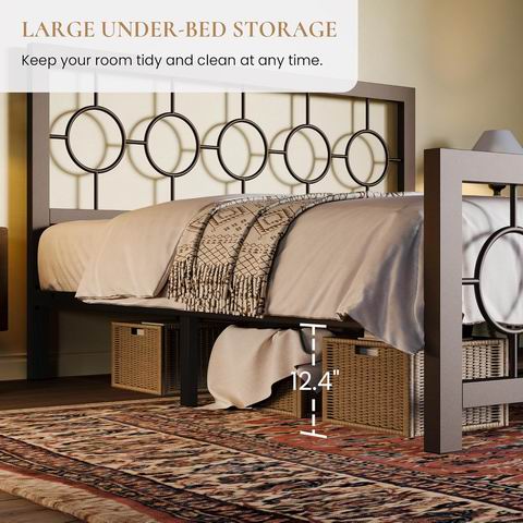 采用复古圆形设计的床头板与床尾板,以坚固铁质结构提供高达800磅的承重能力;其静音设计与床下储物空间优化了睡眠体验与收纳效率,并支持单人30分钟内快速组装,无需额外弹簧床垫。