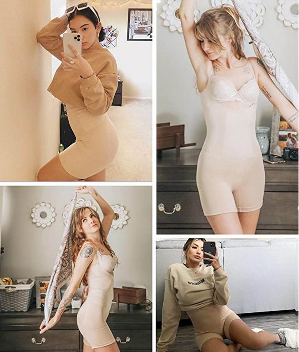 这款紧身连衣裤采用柔软、吸湿排汗的面料、超平接缝制成,腰带中的双层压平腹部和细腰,单层塑形腿部,舒适地控制您的整个躯干和大腿;特殊的前 U 型防胸下垂设计使您的胸部更加挺拔和迷人,有效控制腋窝和背部松弛的脂肪,让您拥有美丽的沙漏身材。