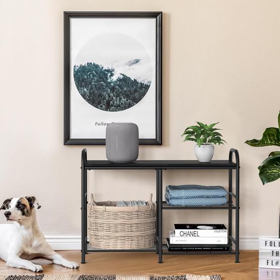 这款鞋架采用三层结构,木质凳面,既可用作鞋架,也可作为鞋凳、植物架或沙发边桌使用。可容纳多达6双鞋子,并设置一侧用于存放2双靴子,适应不同类型鞋子的存储需求。鞋架由坚固的金属结构,承重高达300磅,顶部的刨花板增强了整体的支撑力,确保持久使用,无论摆放在入口、客厅或卧室,都能为家居增添一抹现代感。