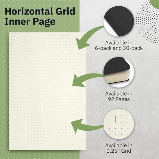 采用可完全平摊的设计,方便使用。尺寸适中。包含92页点阵内页,纸张采用80克高品质纸张,不渗墨,米白色外观尽显高端质感。适合学生记笔记和学习,也适合成年人用作日记或记事本等。