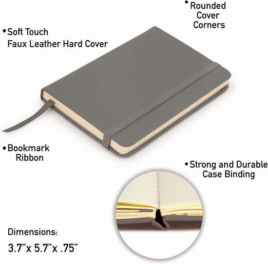 采用耐用的仿皮硬封面和紧凑设计,用途广泛。采用124页优质80克米色横格纸,确保流畅的书写体验,有效防止墨水渗漏,让您的笔记清晰易读。配有一个风琴式口袋,可存放零散纸张、名片或纪念品。内置丝带书签方便您轻松追踪重要页面,提升收纳能力。
