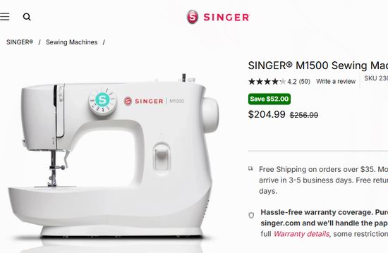 Singer 胜家 M1500 电动缝纫机7.7折 169.08加元包邮!