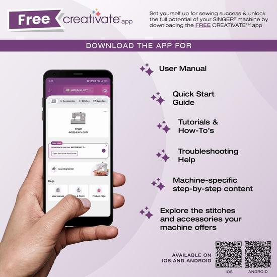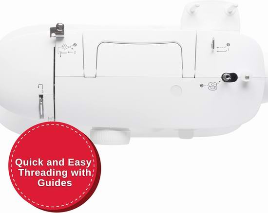 SINGER M1500 缝纫机支持57种缝纫应用,可以缝制时装、拼接被子、制作工艺品或进行简单的修补。包含关键缝纫技巧的针迹:直线缝、之字形缝、暗缝、多步之字形缝、装饰性扇形缝和四步锁扣眼。针迹清晰地显示在针迹选择旋钮上。只需旋转旋钮即可选择所需的针迹。预设针迹长度和宽度,四步扣眼,快速简便的穿线,方便操作。全金属框架,持久耐用。