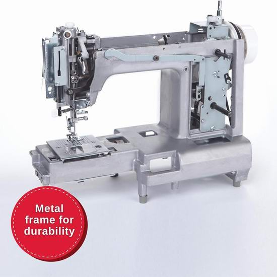 此款缝纫机操作简单,轻松入门,内置97种线迹和23种缝线,包括基本、装饰和弹性缝线,一步快速锁扣眼,预设针迹长度和宽度,压脚压力可调,内置穿线器快速穿线,结实耐用金属框架,操作稳定,皮实耐用。配件包含通用压脚、纽扣缝纫压脚、边缘导板等工具,所有配件存放在机器前隔间中,便于取用。