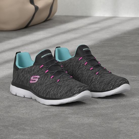 这款运动鞋采用柔软的混色针织鞋面和弹性系带,搭配记忆海绵缓冲鞋垫,提供极致舒适。轻质灵活的减震中底,灵活的橡胶牵引外底,配有1 1/4英寸鞋跟和Skechers® 徽标细节,确保功能性与时尚兼备。
