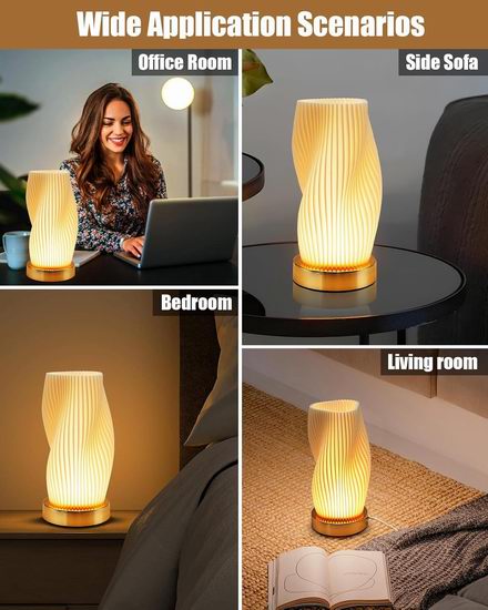 这款可调光床头台灯提供3种色温和9级亮度,适合各种使用需求,从夜灯到学习照明皆可满足。独特的3D打印设计灯罩采用环保PLA塑料,柔化光线保护眼睛。通过USB供电,连接电脑、移动电源或任何USB设备即可使用。时尚简约的设计使其成为卧室、大学宿舍等空间的理想装饰,内置5W LED灯泡,寿命达25,000小时,节能耐用。灯罩可拆卸便于清洁,底部防滑垫确保稳定性。