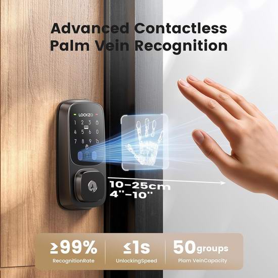 白菜价!历史新低!Lockzo 5合1 挥手开门 智能语音/密码/AI掌纹门锁3.2折 79.99加元包邮!