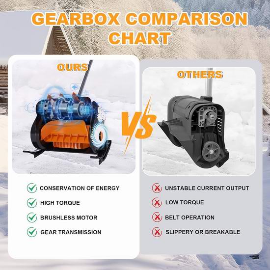 这款无绳铲雪机采用锂电池供电,配备 24V 4Ah 锂电池,续航时间高达30分钟。铲雪宽度16英寸,厚度6英寸,折叠式手柄设计,方便存放和携带,底部软橡胶块确保不会刮伤地面。无论是道路、甲板还是人行道,这款铲雪机都能轻松应对。