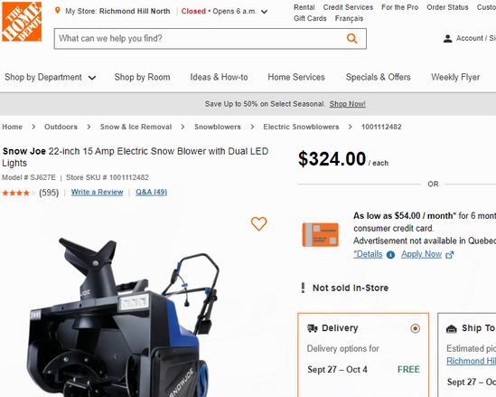 Amazon网店销售,原价:469.63+34.63加元,现价:270.63加元包邮,点击进入订购页面
