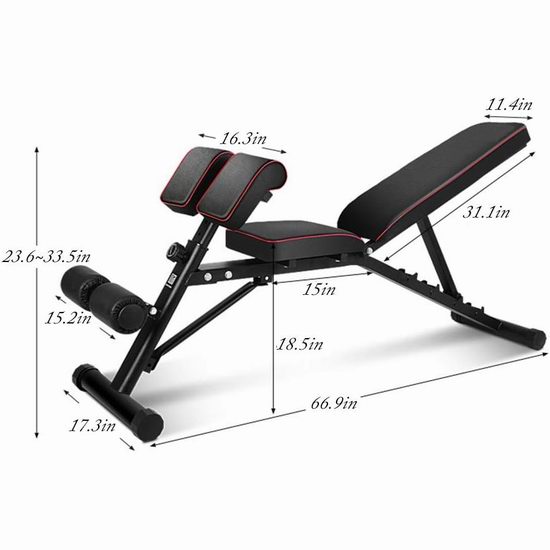 此款健身凳采用一体化设计,靠背4档倾斜度,肘部垫3档倾斜度,可进行超过20种健身训练、多样化力量训练和有氧运动,稳固舒适,占用空间小,非常适合繁忙的上班族,以及不便去健身房的健身人群使用,最大承重550磅。