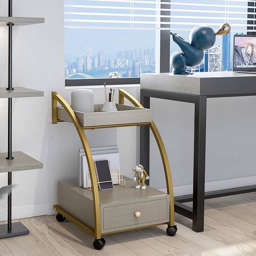 这款小型移动边桌(15.75L x 19.69W x 25.2H 英寸),独特的 C形状,顶部有托盘,底部有抽屉,营造出独特外观。不锈钢框架,金色涂层增添额外的时尚感,并与您房间或办公室融为一体。底部有 4个轮子,可以自由在客厅、办公室、餐桌、厨房或您需要的任何地方自由移动。前面 2个脚轮可以锁定,可固定在需要的位置。非常适合用作客厅、卧室、办公室或您需要的任何地方的茶几、边桌、床头柜、沙发桌、沙发桌、咖啡桌、小吃桌或床头柜。