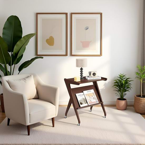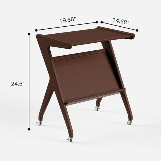 采用天然实心毛竹制作,中世纪复古造型,Z字形置物架设计兼具现代美感与实用性,可放置杂志书籍,配备360°可锁定万向轮,可用作电脑桌、边桌和床头柜使用。