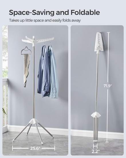 历史新低!SONGMICS 59英寸 3旋臂 可折叠不锈钢晾衣架5.6折 21.74加元!