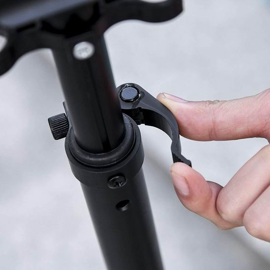 采用高强度铝合金结构,轻巧便携,一步快速折叠。双轮设计,坚固耐用,实心PU轮胎,内置减震系统,使行驶更平稳,后挡板刹车更容易制动。手柄高度可调,适合8岁以上的儿童及成人使用,最大承重220磅。