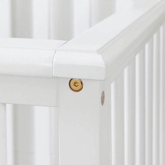 采用高密度松木结构+木制品制成,外形设计经典时尚,环保无毒,获得JPMA认证,符合安全标准,4挡床垫高度调节,挡门可以完全拆除也可以拆除一半,可变换为Toddler幼儿床、坐卧两用沙发床。