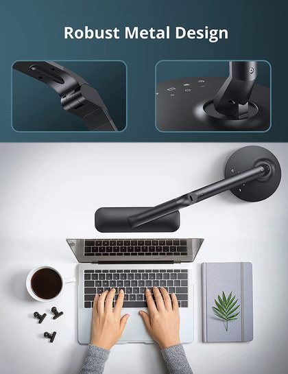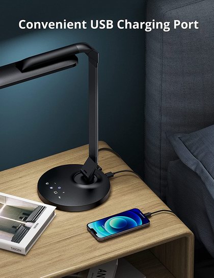 独特的180°旋转灯头设计,照明范围更广,全金属灯杆,底座稳定,坚固耐用,不闪烁的自然光光谱保护眼睛,4个照明模式,4级亮度调节,带60分钟自动关闭的定时器功能。带有USB接口,最大输出电流为1A,可以给手机等移动设备充电。