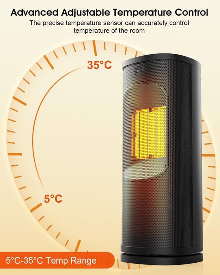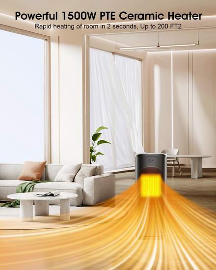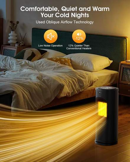 这款电取暖器,具有1500瓦加热功率,采用先进的 PTC 加热技术,可在数秒内迅速升温,高效加热面积达200平方英尺(18.6平方米)的空间。采用 V0 级阻燃材料,具备倾倒保护和过热保护功能。拥有60°的广角摆动功能,确保房间内均匀受热。配备全功能遥控器,具有直观的 LED 显示屏,支持触摸控制。取暖器采用倾斜气流技术,运行极其安静。支持12小时定时,可根据需要设置电暖器的开启或关闭时间。节能模式,可根据环境温度智能调节电暖器的输出功率,在保持您理想的室内温度的同时,降低电费。