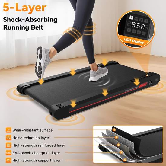 这款多功能振动跑步机可提升您的居家健身体验,适用于步行、慢跑以及办公桌下的各种活动。内置振动模式能够缓解肌肉疲劳,加速身体恢复。提供四种振动强度级别,从轻柔到强劲,有助于燃烧卡路里和脂肪,缓解肌肉疲劳,助您塑造理想体型。跑步机搭载2.5马力伺服电机,确保运行平稳顺畅,噪音低于45分贝。内置 LED 显示屏和 Sperax Fitness 应用程序,可实时追踪您的锻炼数据,包括时间、速度、距离、步数和卡路里,让您可以根据自己的节奏定制每次锻炼。最大承重265磅。