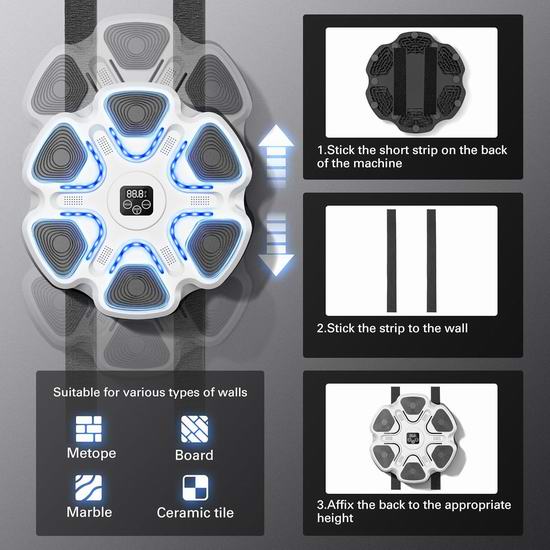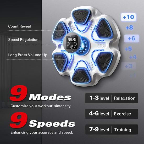 拳击机采用优质材料打造,可承受高强度训练,随附的手套提供卓越的防护和舒适度。内置LED显示屏,能即时显示击球精准度、速度和节奏,确保您在每次训练中都能获得最佳效果。支持蓝牙音乐,使运动更加有趣。具有9种速度和模式,无论是初学者还是经验丰富的拳击手,这款拳击机都能适应您的水平。