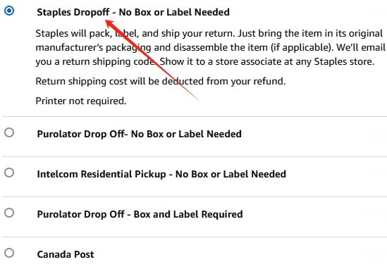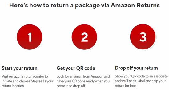 随后,顾客可以将符合退货条件的亚马逊商品送到Staples门店的投递地点,并出示退货二维码(可以用手机出示)免费退货。