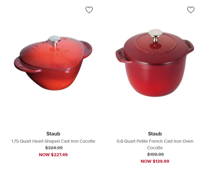 The Bay网店销售,精选多款 Staub 珐琅铸铁锅5折起,使用折扣码:GIFT 额外再打8.5折,满99加元包邮。点击进入订购页面。