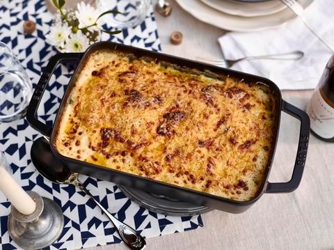 采用法国制造工艺,尺寸约 8×12 英寸(30×20 厘米),厚重耐用。烤盘配备双侧把手,握持稳固,方便从烤箱直接端上餐桌。铸铁材质具备出色的导热与保温性能,可长时间保持食物温度;紧凑的矩形设计既适合烘烤料理,也适合直接作为餐盘摆上餐桌,为家庭聚餐或招待朋友提供优雅实用的烹饪体验。