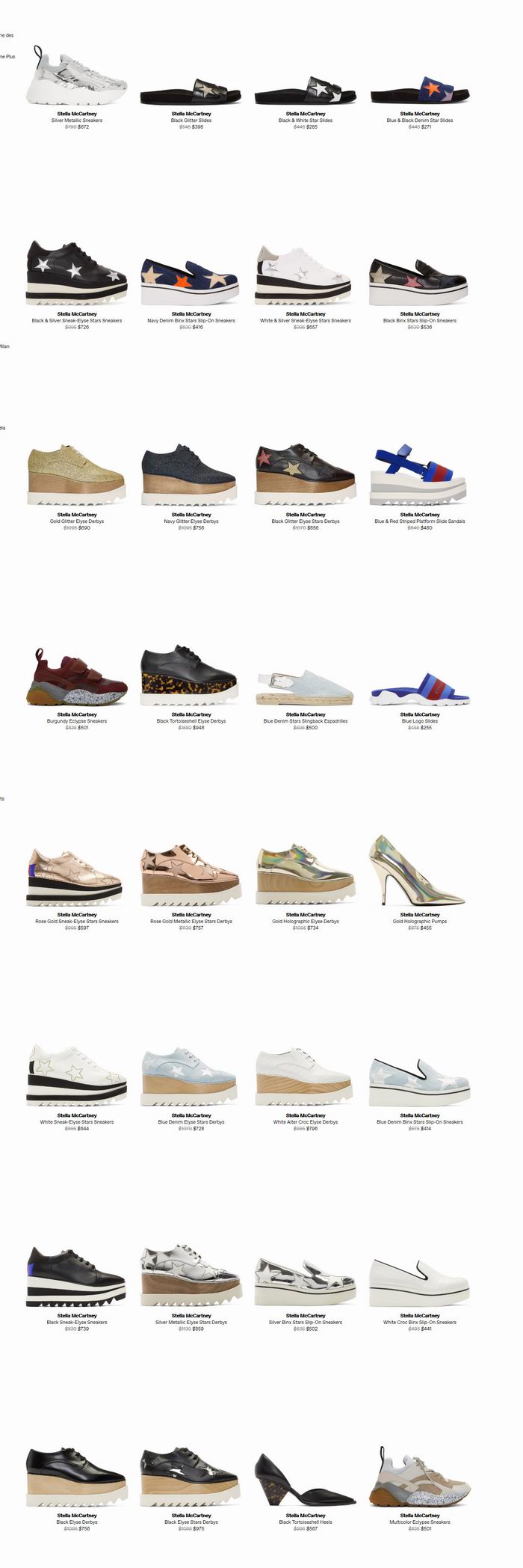 最红的当属Stella McCartney推出的星星厚底鞋Elyse,复古的厚底鞋强势回归,各大明星、博主、编辑都在穿Stella cCartney的“台阶鞋”,即符合了运动风的大潮,又带着Normcore的气质;关键是性能良好:增高+舒适+增高。