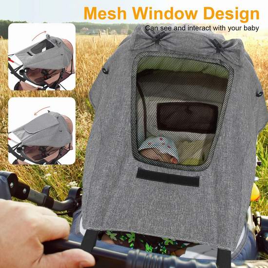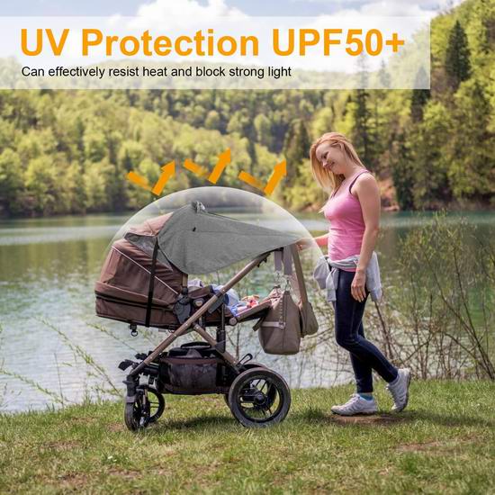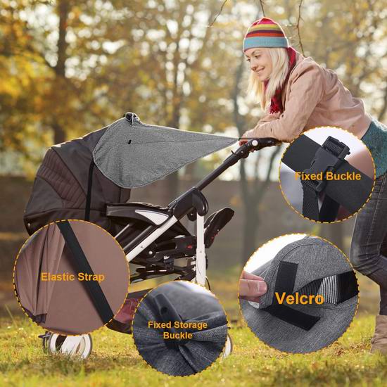 这款婴儿车遮阳篷具有50+紫外线防护,可让您的宝宝保持凉爽,免受有害的 UVA 和 UVB 射线的伤害。遮阳篷可以轻松挂在杆子上,然后按下按钮即可轻松取下,折叠起来方便收纳。遮阳篷延伸部分,带有观察窗设计,您可以经常查看宝宝的情况,给他更好的视野,也方便您与宝宝互动。得益于弹性绑带,这款遮阳罩可以轻松固定在任何婴儿推车上。