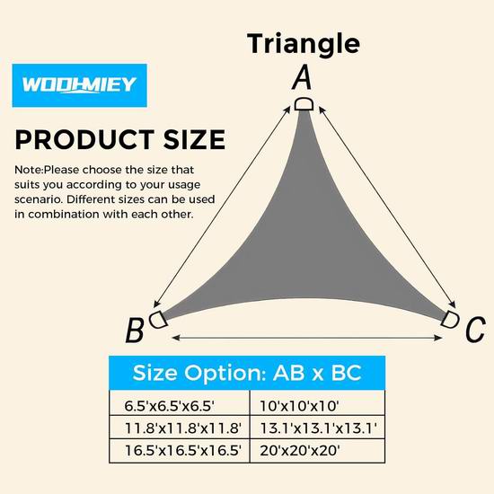 白菜价!WODHMIEY 5 x 5 x 5米 防紫外线三角遮阳篷3.4折 13.66加元清仓!