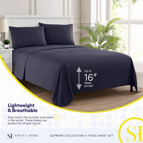 超级白菜!历史新低!Sweet Home Collection 1800支磨毛 海军蓝 Queen床单4件套2.3折 17.14加元清仓!