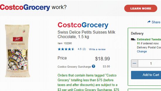 如下图所示,Costco官网同款售价17.99加元,但CostcoGrocery类别产品只接受会员下单,且另需支付3加元运费: