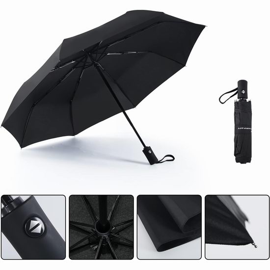 这款紧凑型雨伞采用黑色金属轴和玻璃纤维伞骨设计,能够抵抗高达55英里/小时的阵风,提供卓越的稳定性。伞篷使用210T春亚纺材料制成,具有优异的防水性和快干性能。这种布料不易浸湿,在雨后轻轻一摇,水滴便可迅速消失。雨伞还配备了全自动开关功能,通过按一下按钮就能快速打开或关闭,让您在进入汽车、建筑物或帐篷时更加便捷。雨伞折叠后长度仅为10.8英寸,重约12.2盎司,非常轻便。它的紧凑轻巧设计使得可以轻松携带,可存放在背包、手提包或车内,随时应对突如其来的雨天。