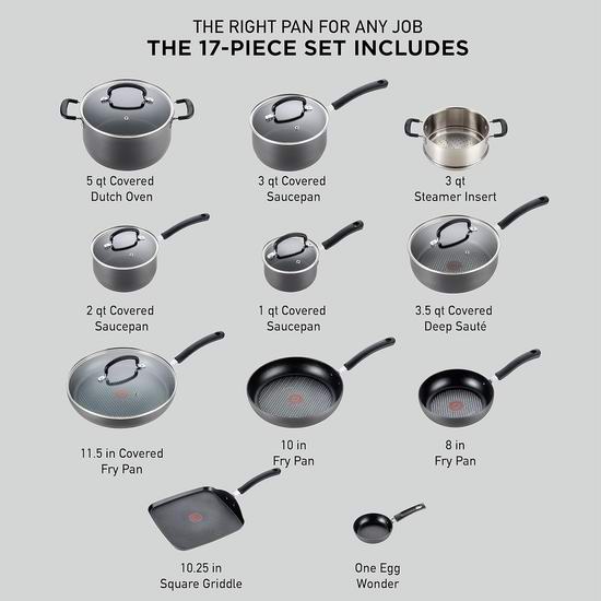 T-fal E918SH 终极硬质阳极化红点不粘底锅具17件套4.9折 180.49加元包邮!