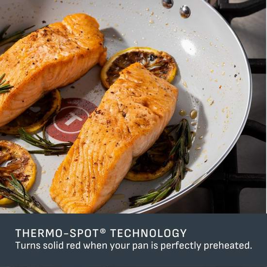采用优质陶瓷不粘涂层,可防止食物粘连,易于清洗。内置专利热点指示,在锅具完全预热后会变成稳定的红色,确保均匀加热,使每一餐都能获得一致的烹饪效果。符合人体工程学的隔热手柄提供稳固舒适的握感,确保安全的烹饪。兼容于除电磁炉以外的所有炉灶。安全温度高达350°F/180°C,可用于烤箱。套装包含8英寸(20厘米)和 10英寸(26厘米)煎锅各1个。