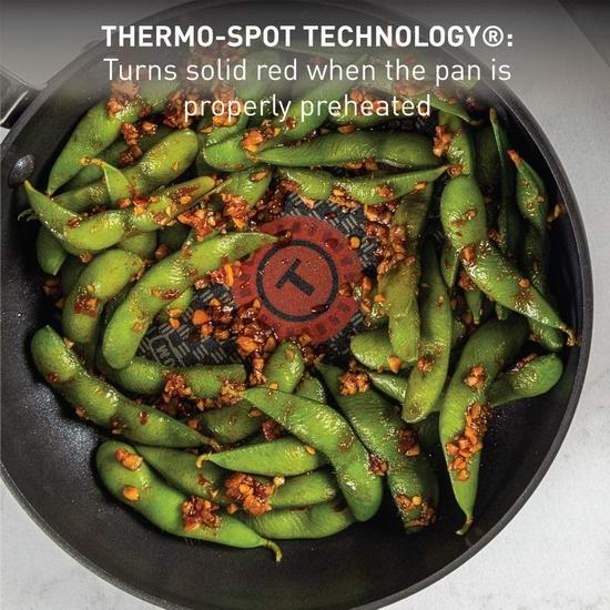 采用坚硬的硬质阳极氧化处理的外层,持久耐磨,独家技术保证受热分布更加均匀,锅底热量指示变为红色时,则表明已充分预热,方便您掌握最佳烹调温度,让烹饪变得更简单更安全。TechnoResist防变形底座具有出色的抗变形能力和均匀的导热性,可实现最佳烹饪效果。烤箱安全温度最高可达400°F,带盖最高可达350°F。本套装包含10英寸、12英寸煎锅各一。