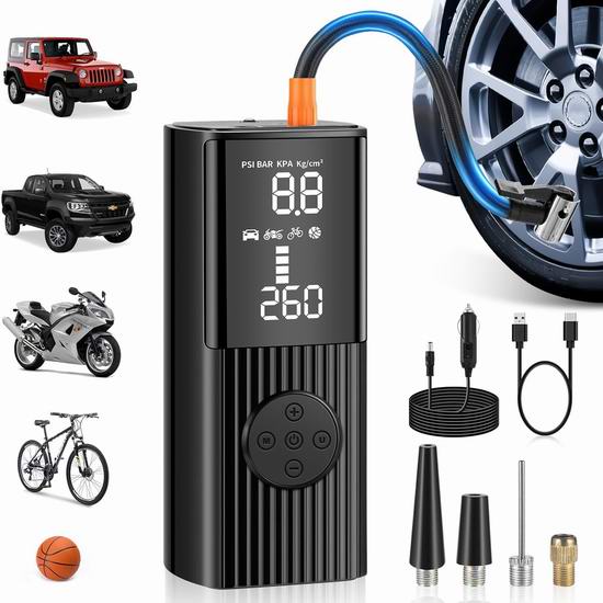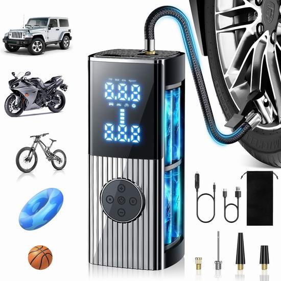优惠白菜价!历史新低!JUSUOX 150PSI 多功能 无线电动轮胎充气泵3.1折 24.99加元!