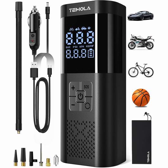 优惠白菜价!历史新低!TEMOLA 150PSI 汽车轮胎 多用途无绳充气泵3.6折 25.64加元!