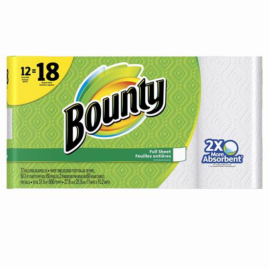 优惠Bounty 双层厨房用纸12卷 14.14加元,原价 22.99加元