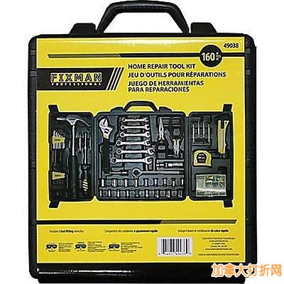 Amazon网店销售,原价:64元,现价:33.96元,全站满35元包邮,点击进入订购页面。 符合ANSI标准,经过热处理,增加工具强度和抗腐蚀性,包含了家庭日常维修所需的基本工具,配送手提箱,厂家提供终身保修。