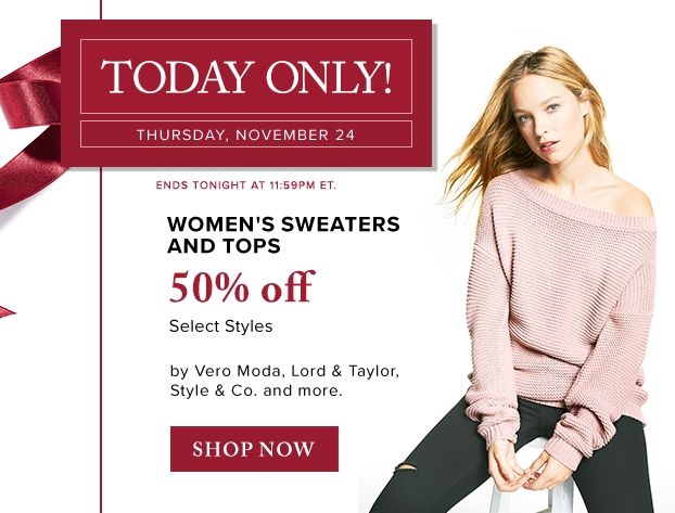 The Bay网店销售,今日800余款Style & Co, Dex, Lord & Taylor, I.N.C. International Concepts, Calvin Klein Sportswear, Vero Moda, Karen Scott, Chaps, Kensie, Design Lab Lord & Taylor等品牌毛衣半价19.99元起特卖,点击进入订购页面。