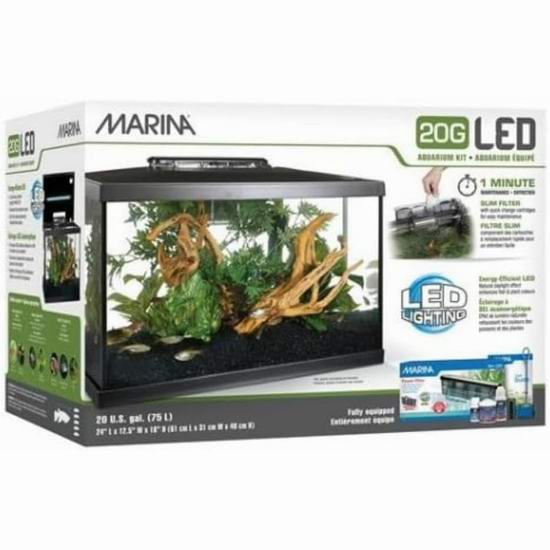 Marina 20加仑 LED照明 全玻璃鱼缸/水族箱6.5折 161.47加元包邮!