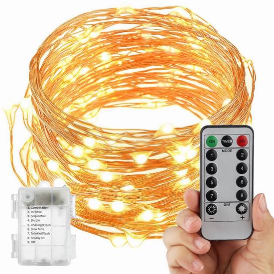 优惠Chanvi 100LED 33英尺 遥控铜线灯串 9.99加元限量特卖!