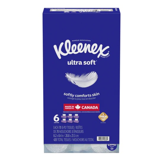 优惠Kleenex Ultra Soft 舒洁 超软面巾纸/抽纸(120抽x3盒) 9.99加元(原价 14.52加元)