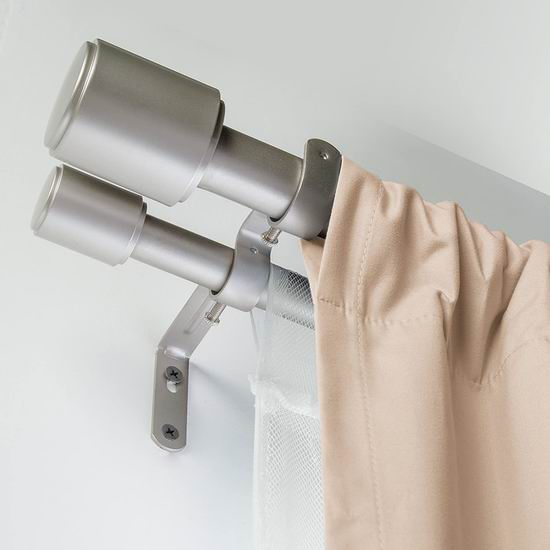 Amazon网店销售,原价:60.49加元,现价:30.64加元,全站满35加元包邮。点击进入订购页面。 此款镀镍金属材质,外观简洁大方,双层设计,适合挂两层窗帘(如透明窗帘+厚窗帘组合),窗帘杆长度可在72-144英寸之间调节,若包含杆头,长度则为77.5-149.5英寸。随附安装硬件和安装说明。