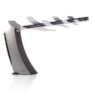 Deluxe VHF/UHF/FM antenna. UHF loop and VHF rods can fold down when not in use. Has 12-position fine-tuning control to maximize signal quality. Passive antenna with rotating VHF/FM dipole and UHF loop for easy tuning.