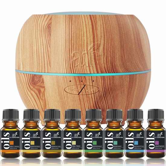 Art Naturals 100毫升木纹超声波香薰加湿器+理疗级纯天然香薰精油8件套 36.76加元限量特卖并包邮!